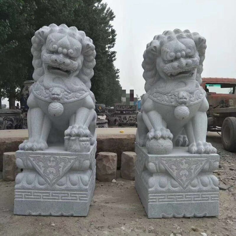 Το αρχαιότερο πέτρινο λιοντάρι που υπάρχει στην Κίνα είναι ένα λείψανο της Ανατολικής Δυναστείας Χαν.Τα αρχαία πέτρινα λιοντάρια χρησιμοποιούνταν κυρίως ως φύλακες παλατιών και τάφωνΓύρω από τις Δυναστείες Λιάο και Τζιν, τα πέτρινα λιοντάρια άρχισαν να χρησιμοποιούνται ευρύτερα.Αυτά τα πέτρινα λιοντάρια συχνά είχαν διαφορετικά σχήματα και ήταν ζωντανάΓια παράδειγμα, τα πέτρινα λιοντάρια στη γέφυρα Λούγκου του Πεκίνου ήταν αντιπρόσωποι αυτής της περιόδου.Στις δυναστείες Μινγκ και ΤσινγκΓια παράδειγμα, το πέτρινο λιοντάρι μπροστά από την πύλη τοποθετήθηκε με κανονικό και συμμετρικό τρόπο,Και η θέση ήταν η ίδια με την συνήθεια των ανδρών αριστερά και των γυναικών δεξιάΔηλαδή, όταν οι άνθρωποι περπατούσαν έξω από την πύλη, το αρσενικό λιοντάρι τοποθετούνταν στην αριστερή πλευρά του ατόμου, ενώ το θηλυκό λιοντάρι ήταν στη δεξιά πλευρά.Το δεξί μπροστινό πόδι της θηλυκής λιοντάρης τείνει να χαϊδεύει το νεογέννητο ή ένα νεογέννητο ξαπλώνει ανάμεσα στα δύο μπροστινά πόδιαΤο αρσενικό λιοντάρι στην αριστερή πλευρά συχνά παίζει με την ορτάντζη στο δεξί του μπροστινό πόδι ή τοποθετεί μια ορτάντζη ανάμεσα στα δύο μπροστινά του πόδια.συμβολίζοντας "διαβίβαση από γενιά σε γενιά".